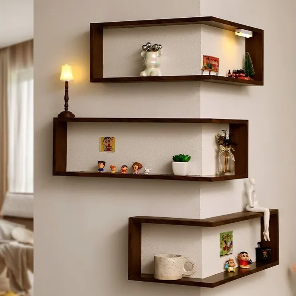 Wooden Corner Wall Shelf – Turn Empty Corners Into a Modern Design Statement